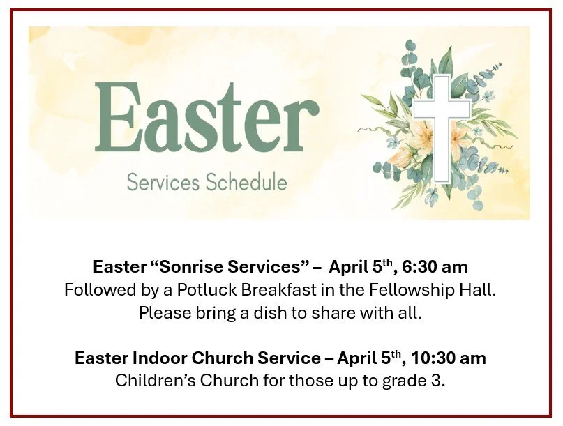 April 5 - Easter Services (6:30 Outdoor, 10:30 Indoor)